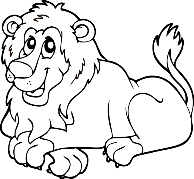 Dessin à imprimer puis à colorier ou à peindre : un lion allongé.