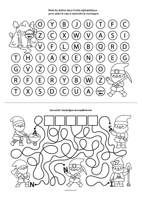 Fiche à imprimer avec deux jeux de lettres pour enfants de maternelle MS, GS, et CP :