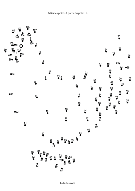 Dans ce jeu, amuse-toi à relier les points dans l’ordre de 1 à 114. Observe bien les chiffres et trace les traits avec soin : peu à peu, une image mystère va apparaître sous tes yeux !