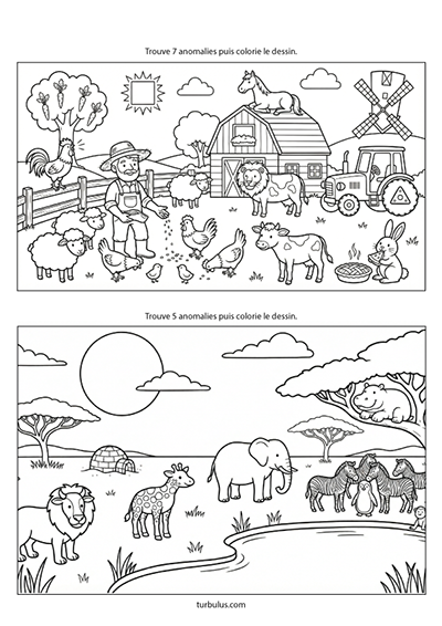 Testez votre sens de l'observation ! Dans ces 2 illustrations de la ferme et de la savane, plusieurs éléments sont incorrects, illogiques ou tout simplement étranges. Saurez-vous tous les identifier ?